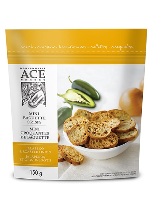 Baked with jalapeno and roasted onion, our flavourful baguettes are then sliced, seasoned and toasted until extra crispy. Our ACE® Mini Crisps are only made with our simplest ingredients and no preservatives to make a treat we think you’ll find irresistible.